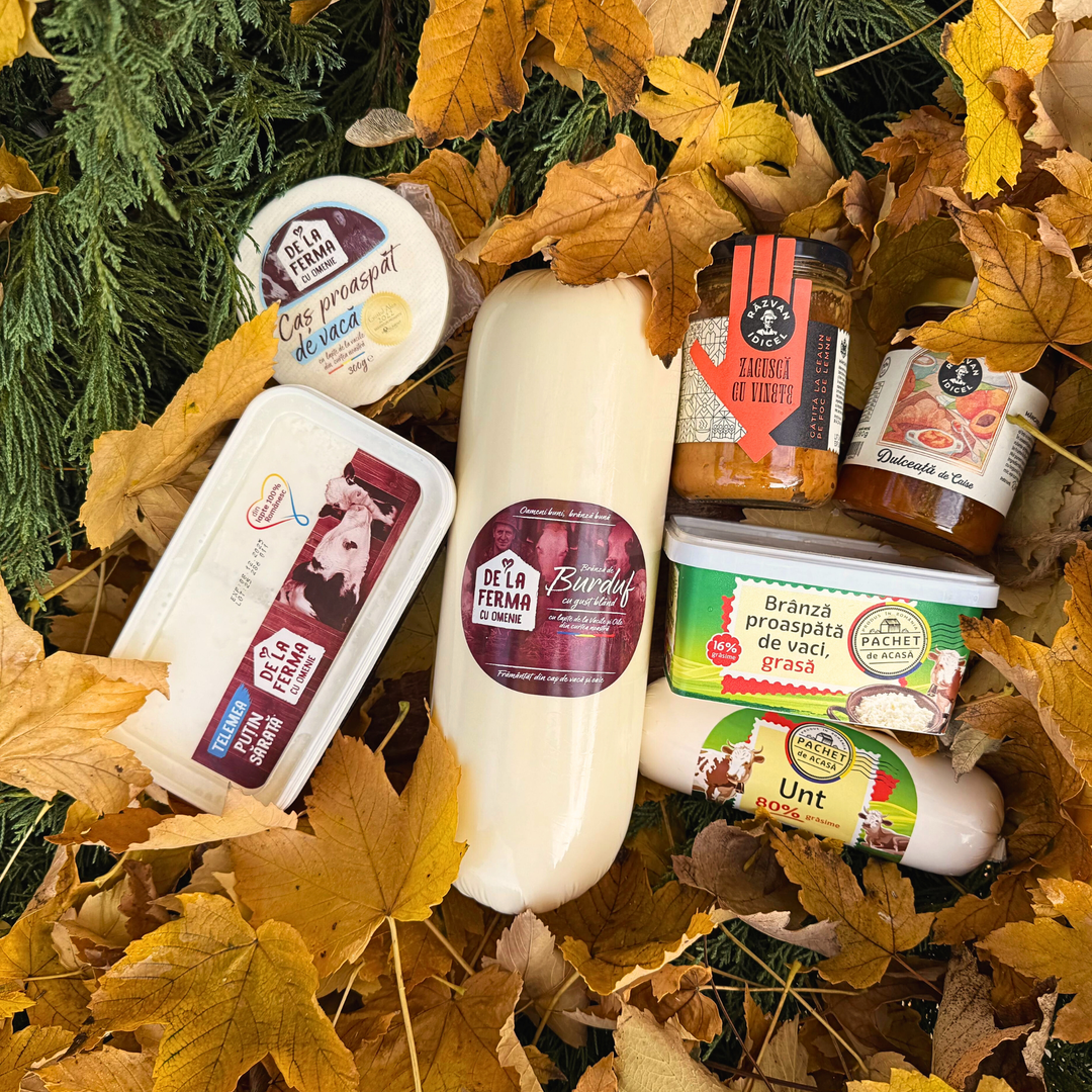 Muncim din 1994 în Unirea, un sat aflat în inima Transilvaniei. Facem brânză folosind lapte de la vacutele din ferma noastră