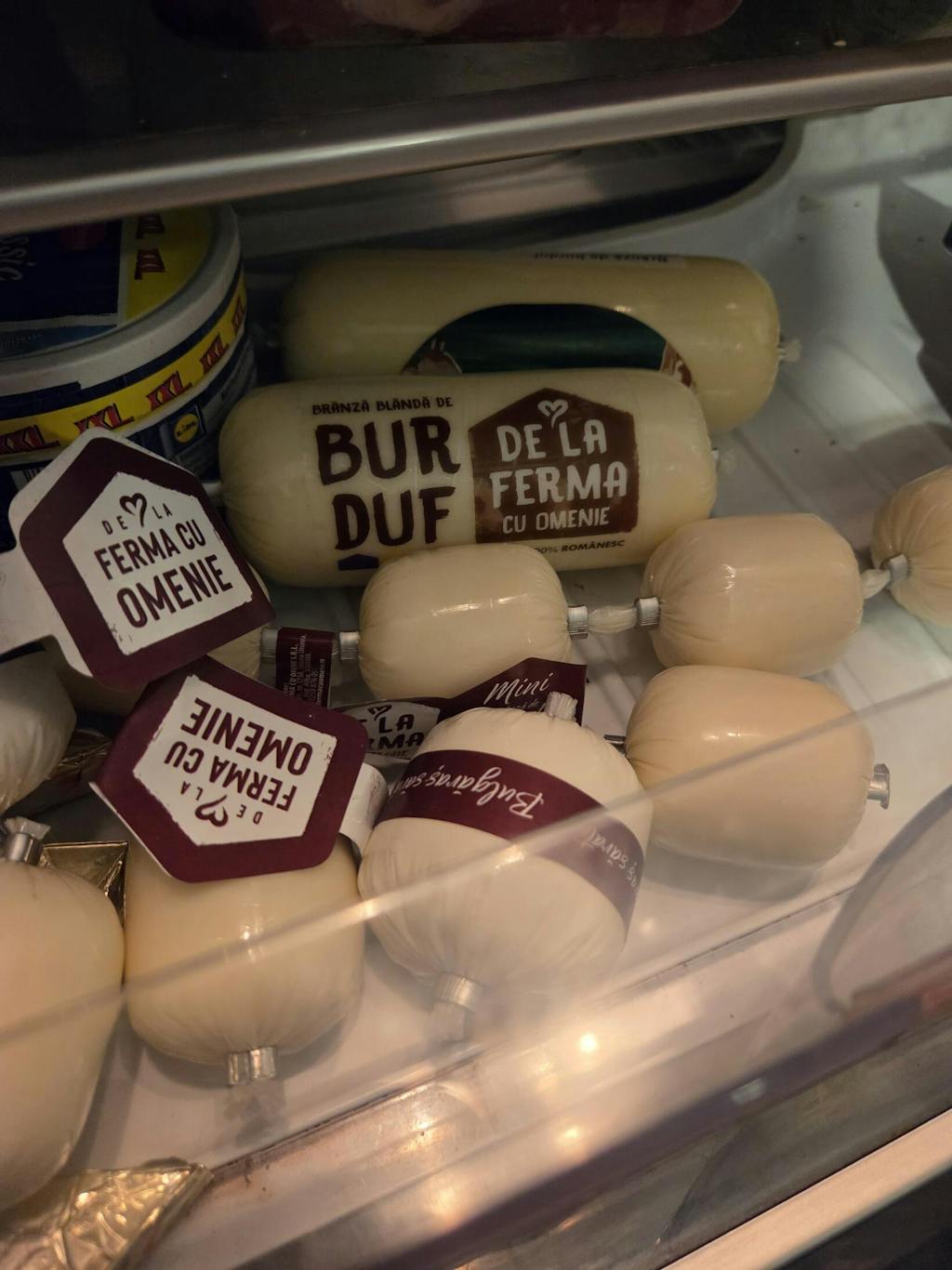 Brânza de burduf „De la ferma cu omenie” este o brânză ușor de gratinat pe mămăligă, plăcinte, paste, pizza și multe alte mâncăruri.