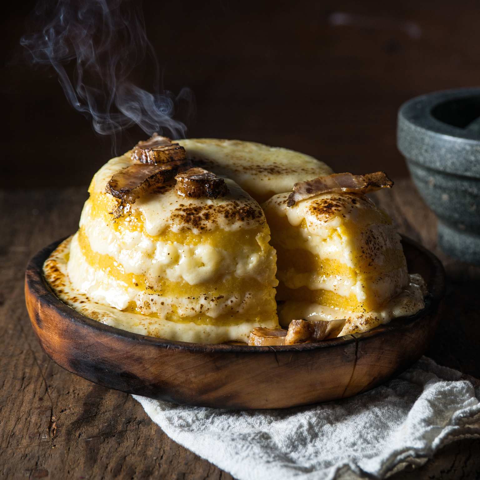 Brânza de burduf „De la ferma cu omenie” este o brânză ușor de gratinat pe mămăligă, plăcinte, paste, pizza și multe alte mâncăruri.